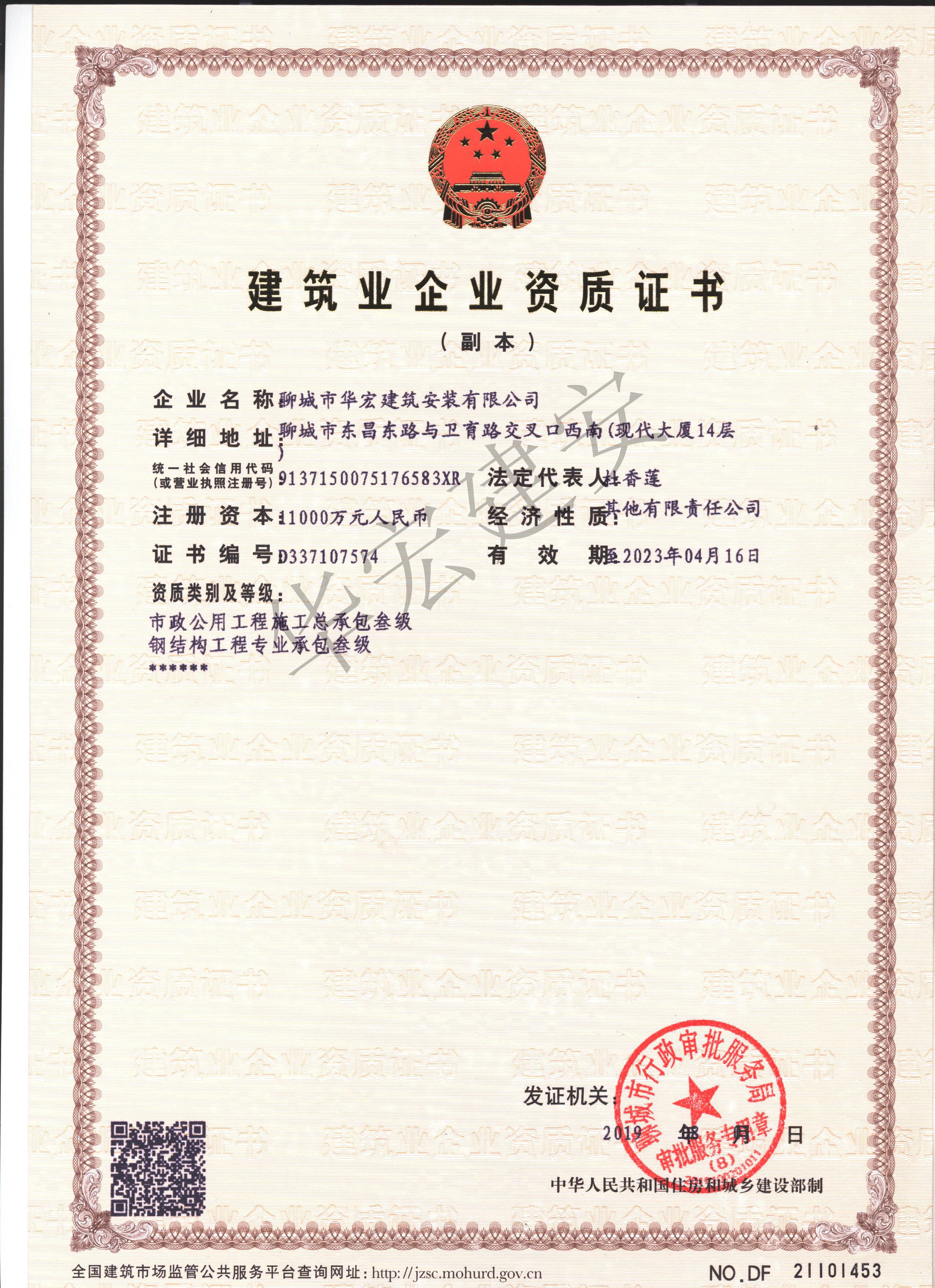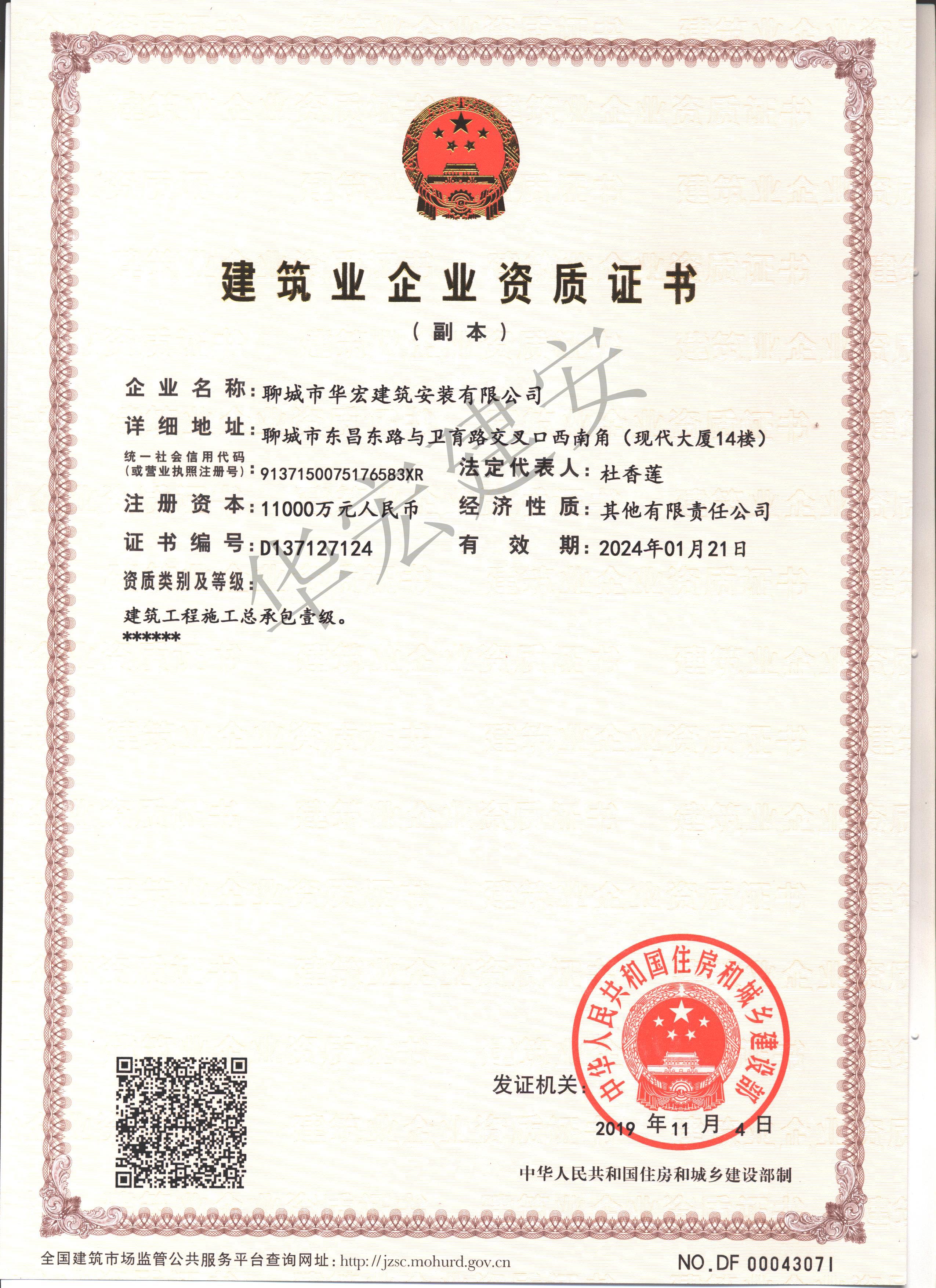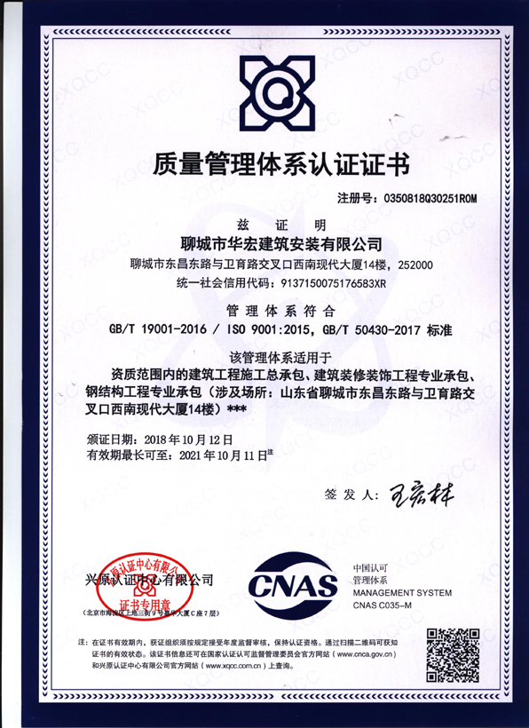 聊城市華宏建筑安裝有限公司成立于2002年5月,公司自2002年成立以來(lái),不斷發(fā)揚(yáng) “敬業(yè)修身 打造精品 開拓創(chuàng)新 弄潮勇進(jìn)”的創(chuàng)業(yè)精神,始終遵循“以質(zhì)量求生存、靠精品創(chuàng)品牌、憑信譽(yù)贏市場(chǎng)”的宗旨,認(rèn)真奉行“科學(xué) 高效 一流”的質(zhì)量方針